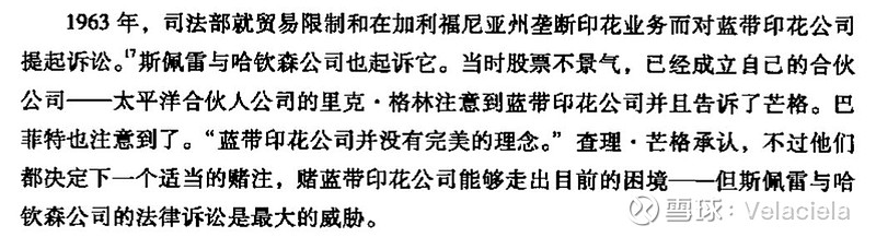 回到“反垄断案”中,当时美国政府认为蓝带印花存在垄断行为,官司打了六年,1968年,蓝带印花开始应对这起诉讼,赔偿斯佩雷公司600万美元,与司法部达成协议,将大部分股份卖出给其他零售商或个体,以转移控制权。在这之前,芒格和格林已经各自买了大约20000股蓝带的股票,巴菲特也在大量购买,他们赌这场法律诉讼将会得到解决,而蓝带印花会幸存下来。